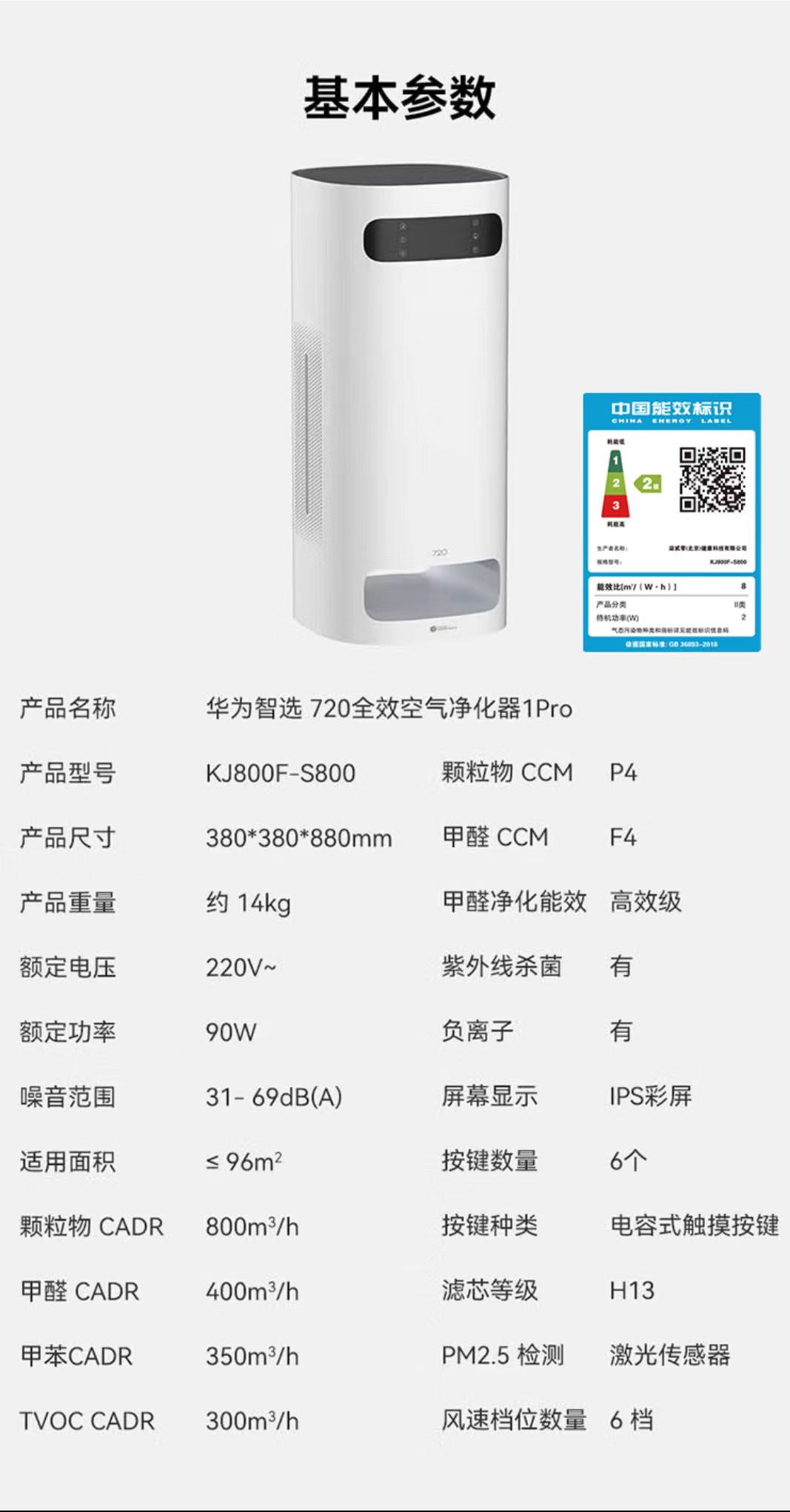 CADR值(m3/h)  :   800